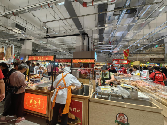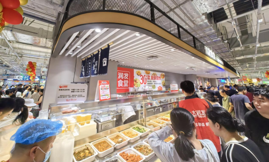 在昆山店,烘焙、熟食加工及潤(rùn)發(fā)食堂片區(qū)成了人氣頂流,煙火氣十足。