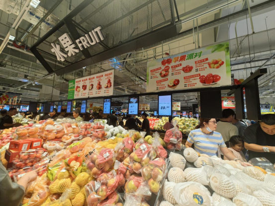 在蔬菜、水果、肉類及干貨的初級(jí)商品經(jīng)營(yíng)上,昆山店采取了散裝為主、散包結(jié)合的方式。部分包裝化的品項(xiàng)集中專區(qū),適配線上快速揀貨的需求。