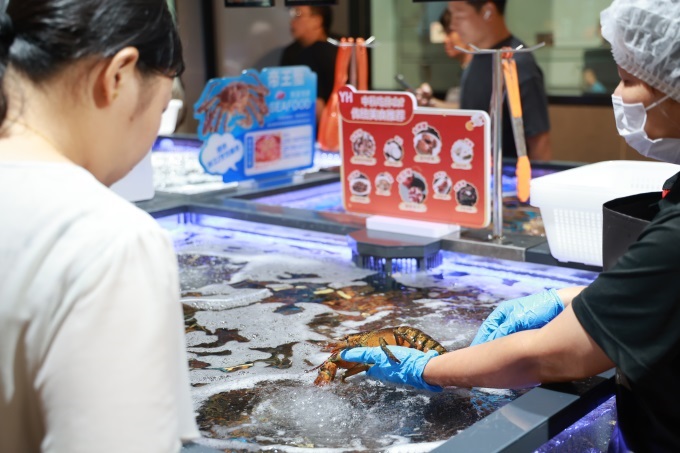 在服務(wù)層面,門店全面借鑒胖東來模式,提供各類貼心服務(wù)。肉禽柜臺可依顧客需求提供切絲、切片、絞肉、剝皮等處理;高端海鮮提供清洗、打氧及簡單烹飪服務(wù)(如清蒸、蒜蓉),確保食材處理便捷、食用安心。