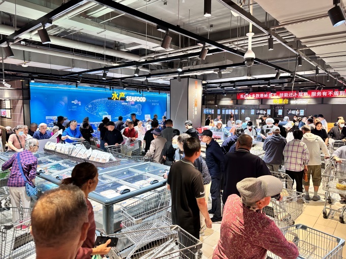 生鮮板塊強化源頭管控與品質(zhì)溯源。安格斯牛肉、潮汕牛肉、本地優(yōu)質(zhì)肉禽等豐富蛋白源同臺亮相;海鮮區(qū)實現(xiàn)“24小時鮮活到店”,梭子蟹、鲅魚、三文魚等組成豐富水產(chǎn)矩陣;來自新疆、云南等地的特色水果通過高效物流實現(xiàn)72小時內(nèi)從產(chǎn)地到貨架。