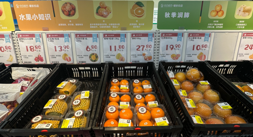 水果產品方面,以時令、季節(jié)限定商品為主,同時還會設置水果導購牌和水果小知識,頗有“胖改”的味道。