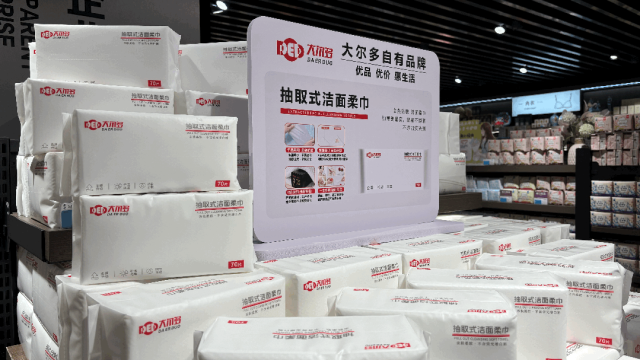 與此同時(shí),大爾多開(kāi)發(fā)了多款自有品牌商品,包括NFC果汁、洗衣液、紙巾、棉柔巾等,進(jìn)一步增強(qiáng)門(mén)店的商品差異化和品質(zhì)感。
