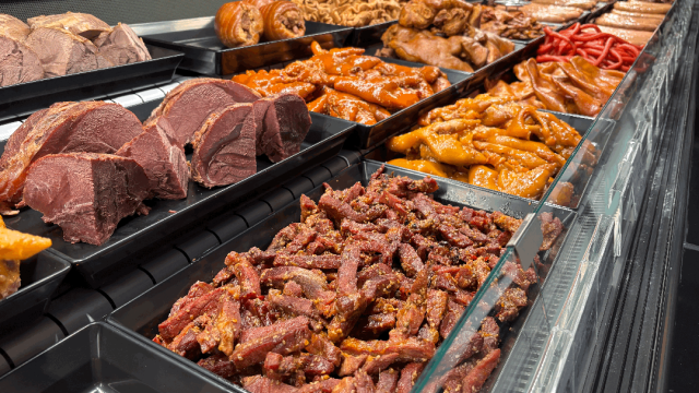 熟食區(qū)全部明檔現(xiàn)制,由專(zhuān)業(yè)團(tuán)隊(duì)制作,從原材料和制作工藝確保品質(zhì)與安全,并引進(jìn)了胖東來(lái)的優(yōu)質(zhì)供應(yīng)商,同時(shí)也推出了秘制鹵肉腸、豆瓣甜腸、香辣牛肉條等胖東來(lái)同款熟食爆品。各種誘人的香氣交織,形成了賣(mài)場(chǎng)獨(dú)特的煙火氣。