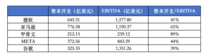 圖:海外巨頭最新財(cái)年資本開(kāi)支(現(xiàn)金流量表口徑)、EBITDA測(cè)算資料來(lái)源:Wind,36氪整理