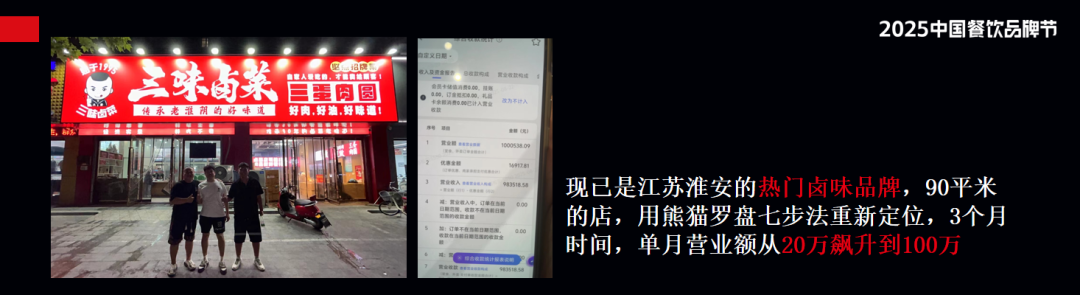 我們給這家店做了重新定位,現(xiàn)在90平方米的店,單月營(yíng)業(yè)額從20萬元做到100萬元。對(duì)于三味鹵菜來說,不是沒機(jī)會(huì),而經(jīng)營(yíng)這家店的人以前沒見過什么是好的店。調(diào)整定位后,三味鹵菜用三個(gè)月實(shí)現(xiàn)了5倍增長(zhǎng)。