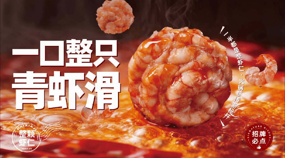 突破傳統(tǒng)蝦滑的“糜狀”形態(tài),肉眼可見(jiàn)的蝦仁含量,真材實(shí)料看得見(jiàn),能更好地滿足消費(fèi)需求。憑借強(qiáng)有力的視覺(jué)沖擊與可感知的價(jià)值,“整只蝦滑”也能成為火鍋餐飲門(mén)店價(jià)值感的“顯性”擔(dān)當(dāng)。