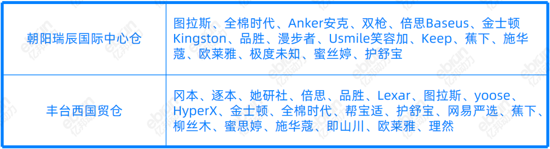 以北京為例,兩個倉內(nèi)入駐的部分品牌