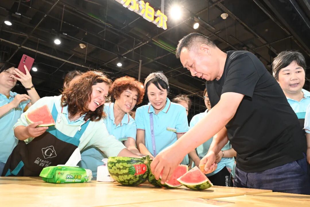 胖東來的老師們把工作的內容都計劃得清清楚楚的,嘉百樂的員工跟著干就行。老師們也都溫溫和和,干活的時候都快樂,東來哥、圖圖哥給大家切西瓜,這是嘉百樂原來沒有的氛圍。胖東來人做事情很嚴謹,但內心很開放輕松,一切都清清白白,坦坦蕩蕩。他們所帶來的氛圍,一下子吸引了嘉百樂上上下下的員工。
