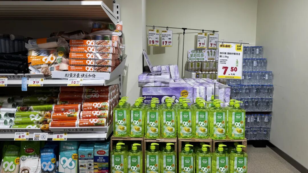 相比首店,新店的自有品牌矩陣擴(kuò)容,糧油米面、日化、果飲等高頻消費(fèi)品類商品不斷豐富?鞓泛镒杂衅放(“猴牌”)通過供應(yīng)鏈直采模式壓縮中間環(huán)節(jié),在保障品質(zhì)的同時(shí)強(qiáng)化價(jià)格優(yōu)勢,契合其“高性價(jià)比”消費(fèi)感知,同樣也可以形成差異化毛利池。