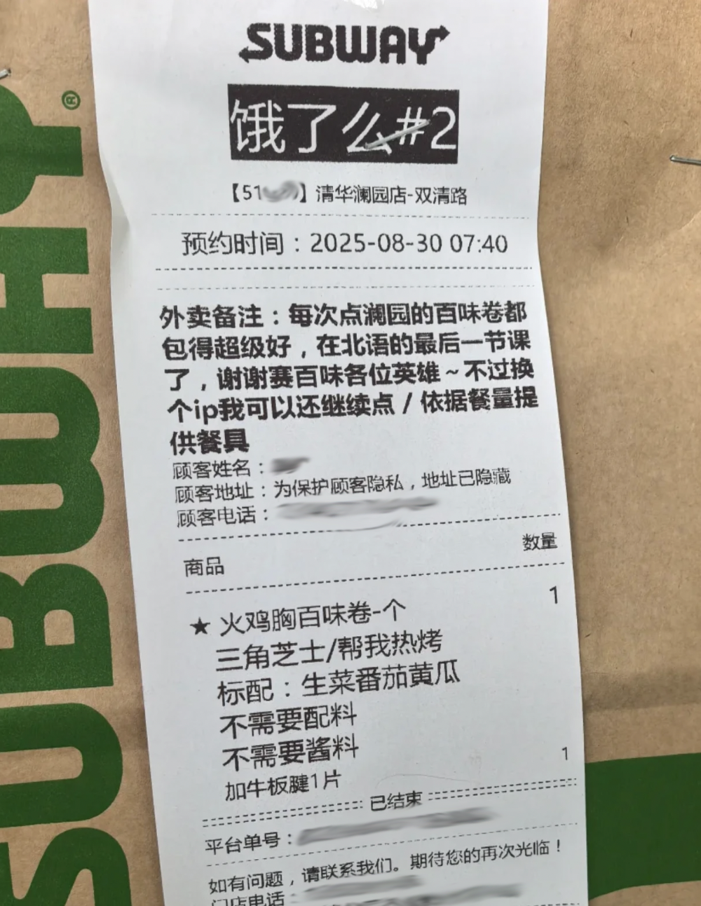 今年8月,清華賽百味宣布閉店,有學生真情留言,“每次點的百味卷都包得超級好,謝謝賽百味各位英雄”。
