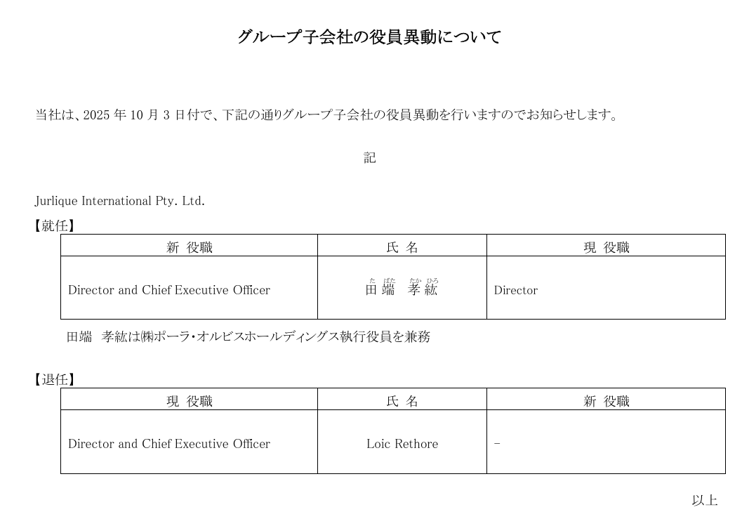 據(jù)POLA集團(tuán)官網(wǎng)發(fā)布的新聞顯示,原董事田端孝纮將接替Loic Rethore成為茱莉蔻董事兼首席執(zhí)行官,本輪人事調(diào)動(dòng)于2025年10月3日正式生效。不過(guò),官方暫未披露原首席執(zhí)行官Loic Rethore的新職位。