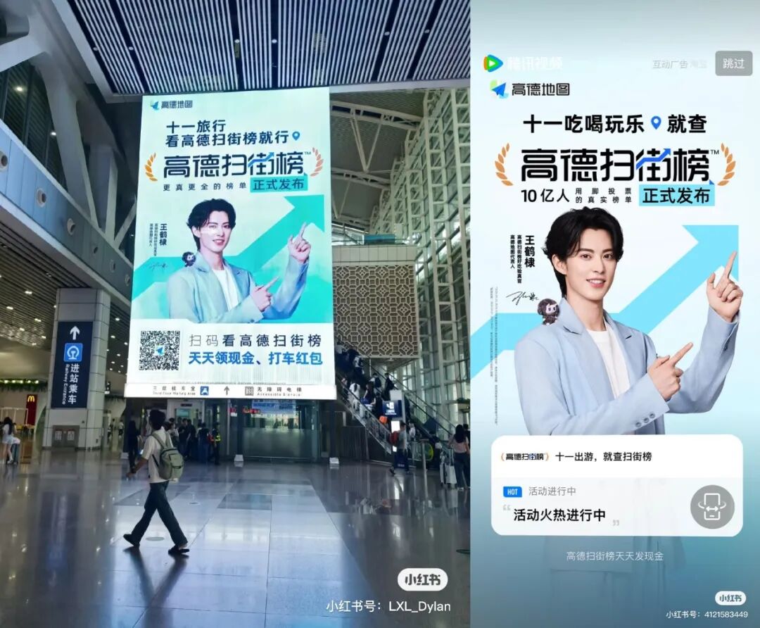 從節(jié)前的「錯峰吃行提示」,到節(jié)日期間線上各大APP開屏,線下各大機場、高鐵站廣告牌,全都霸屏式呈現(xiàn)。國慶本就是出行和導航軟件使用的高峰期,再加如此猛烈的廣告攻勢,國慶第3天,高德宣布掃街榜「累計用戶超4億」,10月1日當天高德本地生活餐飲行業(yè)訂單量同比增長150%。