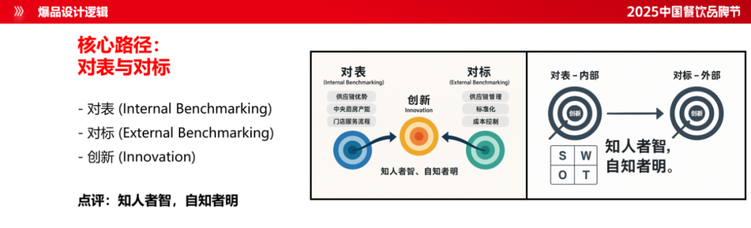 模塊化以外,還要透明化。所有的程序要重新規(guī)范,對(duì)外要“對(duì)標(biāo)”。企業(yè)一定要找到自己的標(biāo)桿,比如對(duì)標(biāo)一個(gè)上市企業(yè),所有的數(shù)據(jù)都可以查得到,成本結(jié)構(gòu)、供應(yīng)鏈效率、人效坪效數(shù)據(jù),它是怎么做的?你可以進(jìn)行對(duì)標(biāo)。對(duì)內(nèi)則要“對(duì)表”,對(duì)表內(nèi)部的供應(yīng)鏈優(yōu)勢(shì)清單、中央廚房產(chǎn)能報(bào)表、門(mén)店服務(wù)流程SOP。在清晰的自我認(rèn)知中,發(fā)現(xiàn)降本空間和市場(chǎng)差異性。