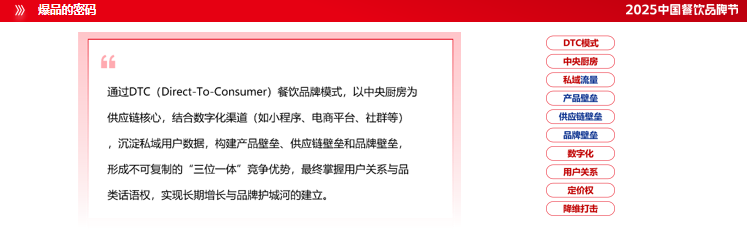 在這種情況下,我們就會(huì)提到DTC模式(Direct-To-Consumer),餐飲互聯(lián)網(wǎng)最佳的盈利模式,剛才我們提到千萬(wàn)不要只看客單價(jià)和坪效,要看到我們產(chǎn)品的流量要賣(mài)到500公里、5000公里以外去,這樣你才能成為真正的爆品,不然肯德基就只是賣(mài)新奧爾良雞翅,它不可能成為一個(gè)百億的產(chǎn)業(yè)。所以企業(yè)在扁平化的基礎(chǔ)上,應(yīng)該還要有這么一個(gè)SPM工作過(guò)程,一定要有這樣一個(gè)領(lǐng)袖,才能持續(xù)盈利,產(chǎn)出爆品。