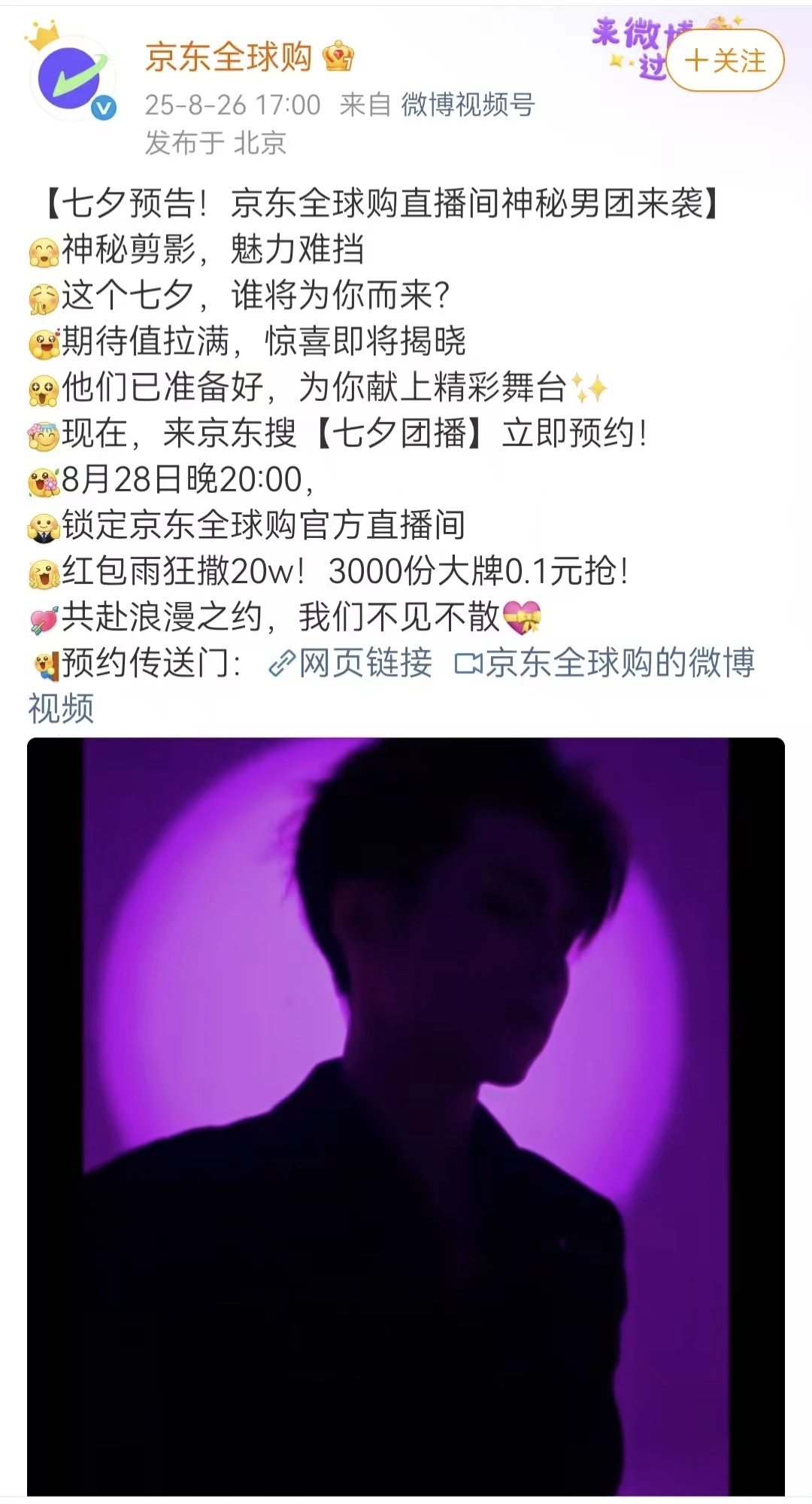 又如麻辣王子、香飄飄、絕味鴨脖、瑞幸咖啡等品牌也攜手男團(tuán)、女團(tuán),通過團(tuán)播形式,為自家直播間拉人氣,提升熱度,從而實(shí)現(xiàn)轉(zhuǎn)化。值得一提的是,今年七夕,京東全球購也通過男團(tuán)、女團(tuán)打PK的形式,試水團(tuán)播。