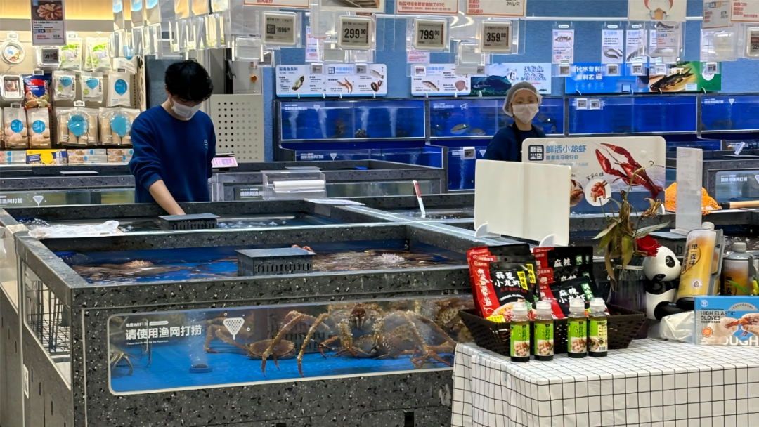 但是在商品同質(zhì)化日益嚴(yán)重的背景下,“餐超一體”模式提供了一種強(qiáng)大的差異化競爭手段。線上電商可以復(fù)制商品和價格,但無法復(fù)制鮮活食材被現(xiàn)場烹制成美味佳肴的場景感和煙火氣。