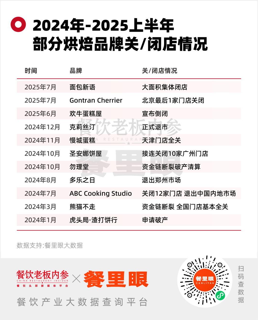 2025年7月,老牌網(wǎng)紅烘焙品牌面包新語被爆出大面積集體閉店。