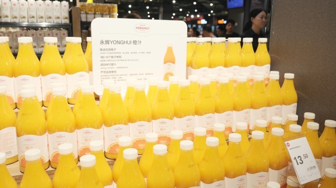 在品質升級層面,門店專門設立了胖東來自有品牌專區(qū),集中展示DL精釀啤酒、DL燕麥片、DL復合果汁、DL自由愛白酒等近70支爆火單品。永輝自有品牌商品同樣表現(xiàn)突出,例如永輝YONGHUI橙汁,甄選優(yōu)質橙子并添加NFC原漿,品質嚴苛;永輝YONGHUI微膠囊香氛酵素洗衣液,采用高定香氛與微膠囊緩釋留香技術,實現(xiàn)長達72小時的持久留香;永輝定制&金曄益生元陳皮山楂條,堅持0添加劑、0色素,口感清爽不膩。