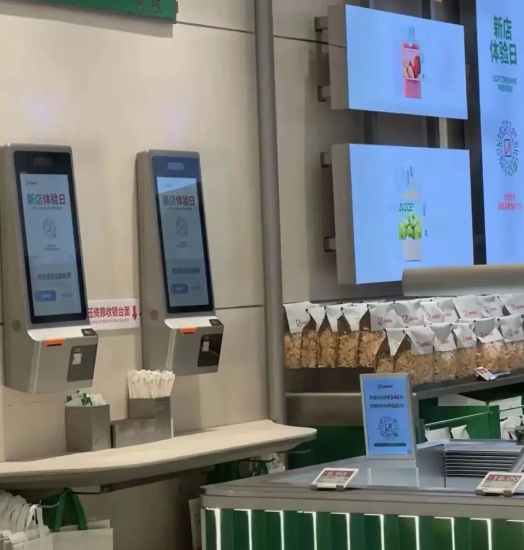 在購物流程上,門店支持線上線下一體化選購,顧客可選擇到店直接選購,也可通過小程序提前下單、到店自提。結(jié)算環(huán)節(jié)配備自助掃碼機,顧客選購?fù)瓿珊罂勺孕袙叽a支付,全程便捷高效。