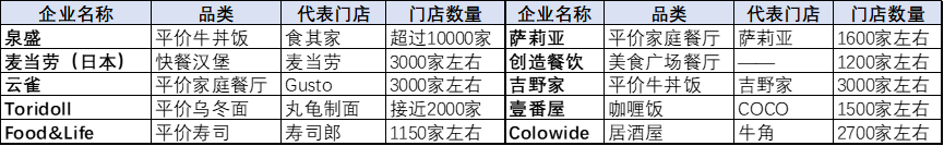 泉盛不是孤例。日本市值前十的餐飲企業(yè)中,九家是“平民代表”。只有第十名的Colowide(旗下有牛角、溫野菜)算中產(chǎn)餐廳,但也算不上高端。