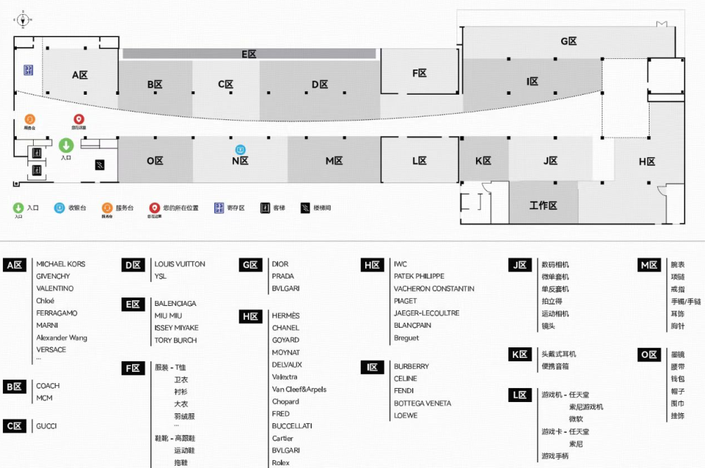 以超級轉轉為例,倉店面積3,000平米展示了達30,000件貨品,劃分為15個區(qū)域。雖然超級轉轉除了二手奢侈品還有數(shù)碼影像及游戲盒子,但后兩者僅占據(jù)了其中三個小分區(qū),絕對主倉位仍然為二手奢侈品。