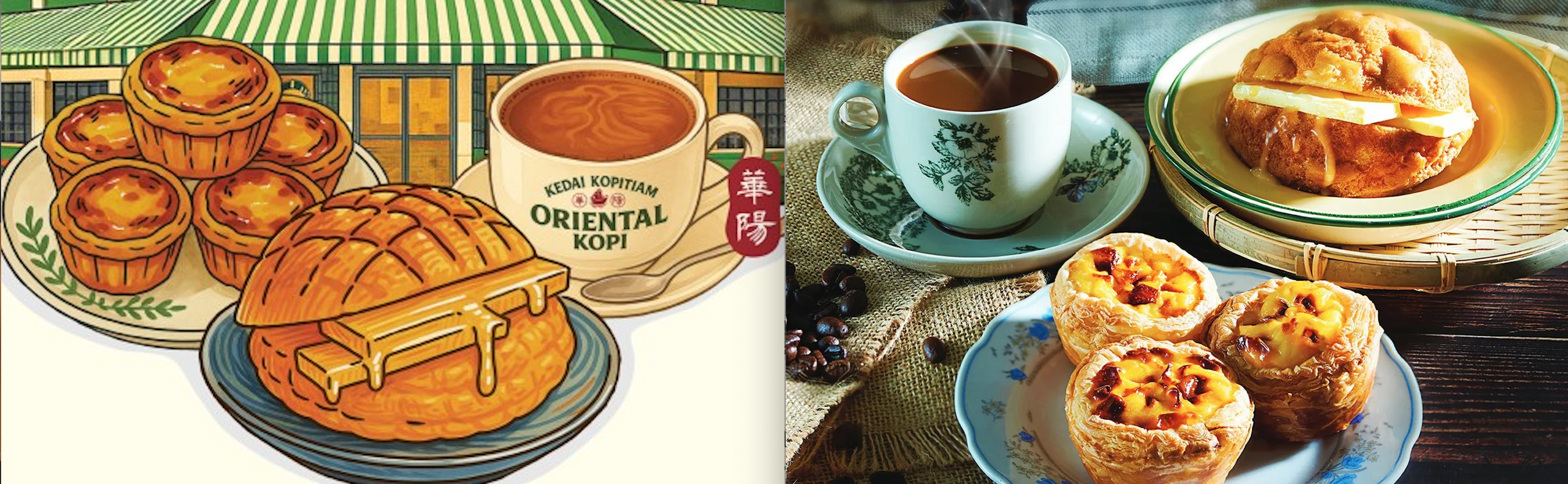 柔佛本地插畫師安妮絲告訴我們,這些作品甚至不是出自高級(jí)AI工具,更像是免費(fèi)AI軟件的產(chǎn)物!扒瓣囎硬皇橇餍邪颜掌D(zhuǎn)成卡通風(fēng)格嗎?這組圖案的風(fēng)格就和當(dāng)時(shí)那些AI作品一模一樣!彼找出了這些圖案可能的原型——華陽茶室官方菜單上的菜品照片,兩者在構(gòu)圖與元素上高度相似,看起來確實(shí)像是照片直接“AI化”的結(jié)果。