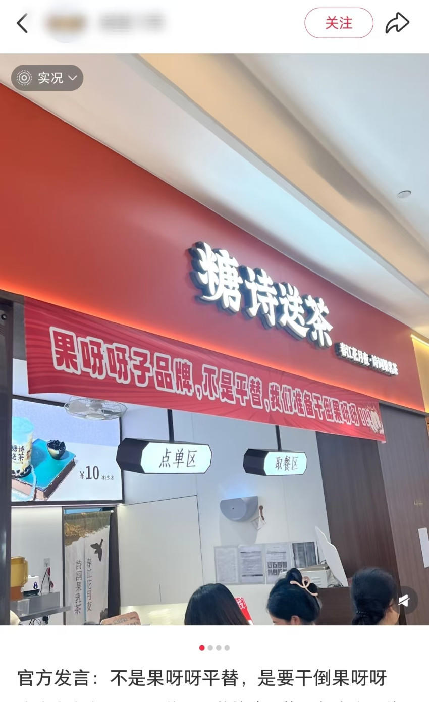 近日,有網(wǎng)友在社交平臺上曬圖,果呀呀旗下的茶飲品牌“糖詩送茶”在門口拉了一道特別的橫幅:“果呀呀子品牌,不是平替,我們準(zhǔn)備干倒果呀呀”。這一極具話題性的表述迅速引發(fā)討論,也讓大家的關(guān)注點(diǎn),聚焦到了果呀呀的子品牌“糖詩送茶”。