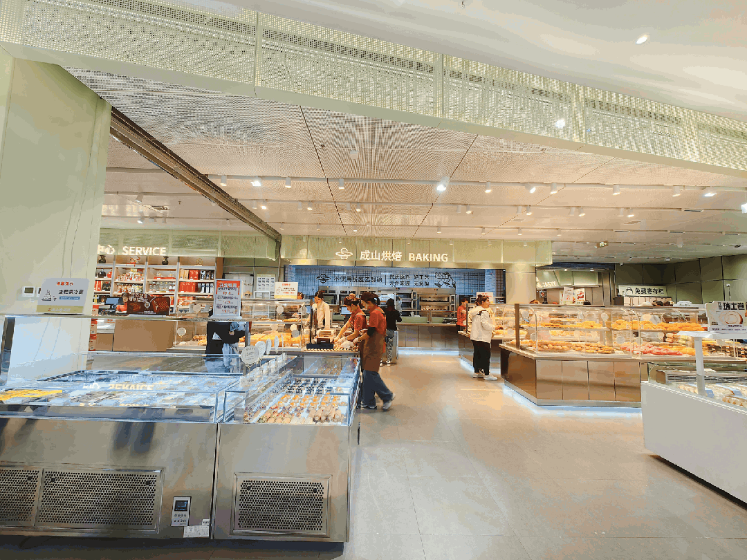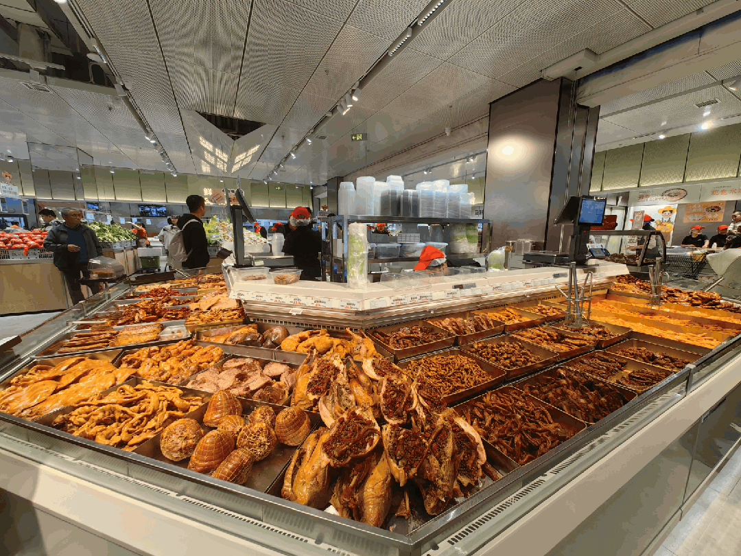 第四階段(2024年至今),是新模式探索及發(fā)展。“2024年,基本上在學習,為我們新的加工型、餐超結(jié)合的門店做準備。而真正的改變和發(fā)展是從2024年10月份,我們開出來了曲江店,這是我們用新的形式、新的商品和新的經(jīng)營模式轉(zhuǎn)型的第一個店,做完以后感覺效果非常好。后來面積從1500㎡擴充到2000㎡!