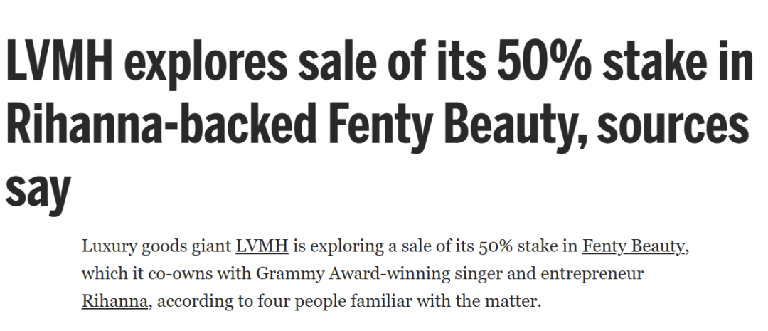 10月22日,據(jù)外媒fashionnetwork報(bào)道,知情人士稱LVMH正在探索出售Fenty Beauty 50%的股份。