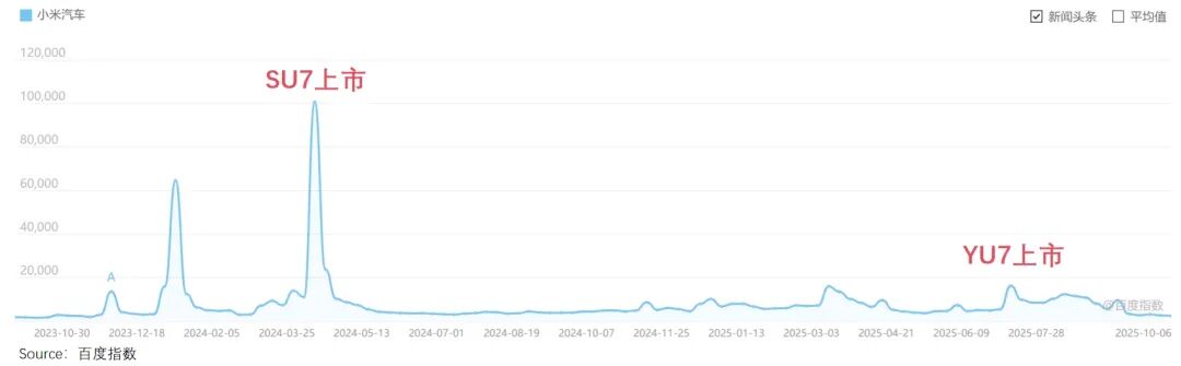 正如小米SU7,以30萬級價格提供2.78秒零百加速、800km續(xù)航及生態(tài)互聯(lián)等硬核體驗,驚艷了市場,消費者印象深刻。到了YU7,對比競品各有勝負,做到了可圈可點但“毫無波瀾”,因此哪怕銷量更高,熱度卻遠不如SU7。