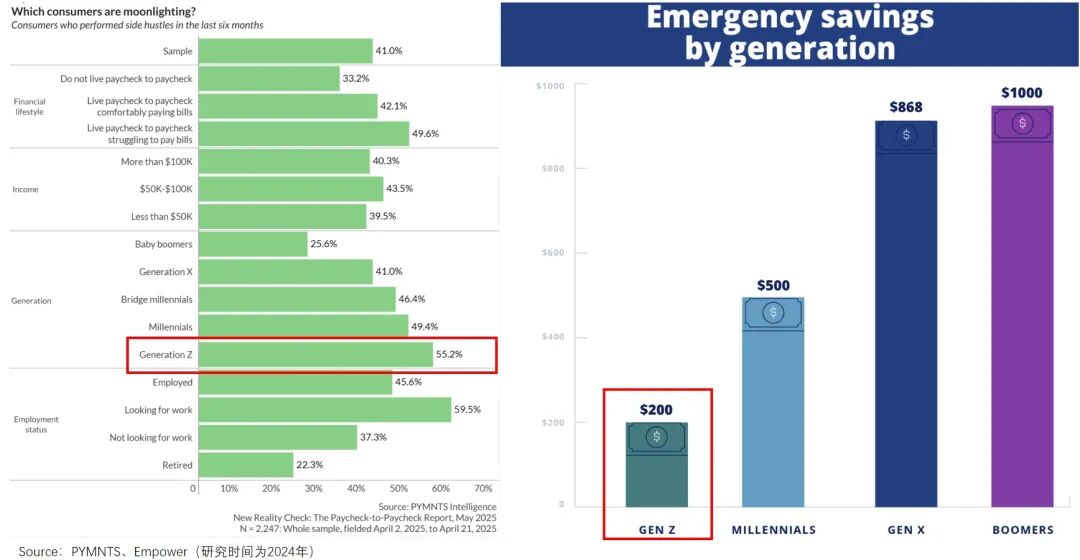 這不僅是福特工人的困境,也是北美年輕一代的縮影。相關報告顯示,超半數(shù)美國Z世代身兼多職,副業(yè)收入占到了他們總收入57%,盡管如此,許多人兜里仍存不夠200美元。