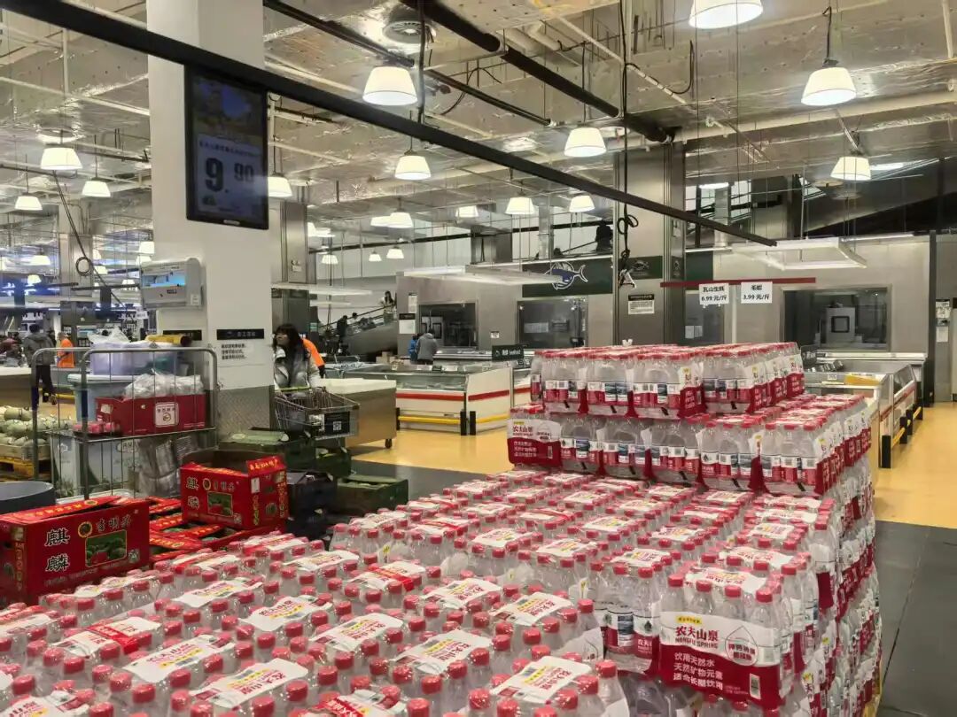 基本沒有裝修的吊頂和大臺(tái)燈般的照明,裝修上應(yīng)該省了不少錢,但在美食街區(qū)都是重投入的設(shè)備。但這些絲毫不影響消費(fèi)者的購(gòu)物熱情,因?yàn)樗幸粋(gè)殺手锏,就是極致性價(jià)比,記者簡(jiǎn)單拍了幾組幾個(gè),大家看看自己對(duì)比,絕對(duì)做到了極致性價(jià)比,當(dāng)然這些也來(lái)源于寬類窄品下的極簡(jiǎn)SKU,門店的商品數(shù)量并不多,但每個(gè)類別都是爆款,都極具性價(jià)比。我們來(lái)看一組圖片。