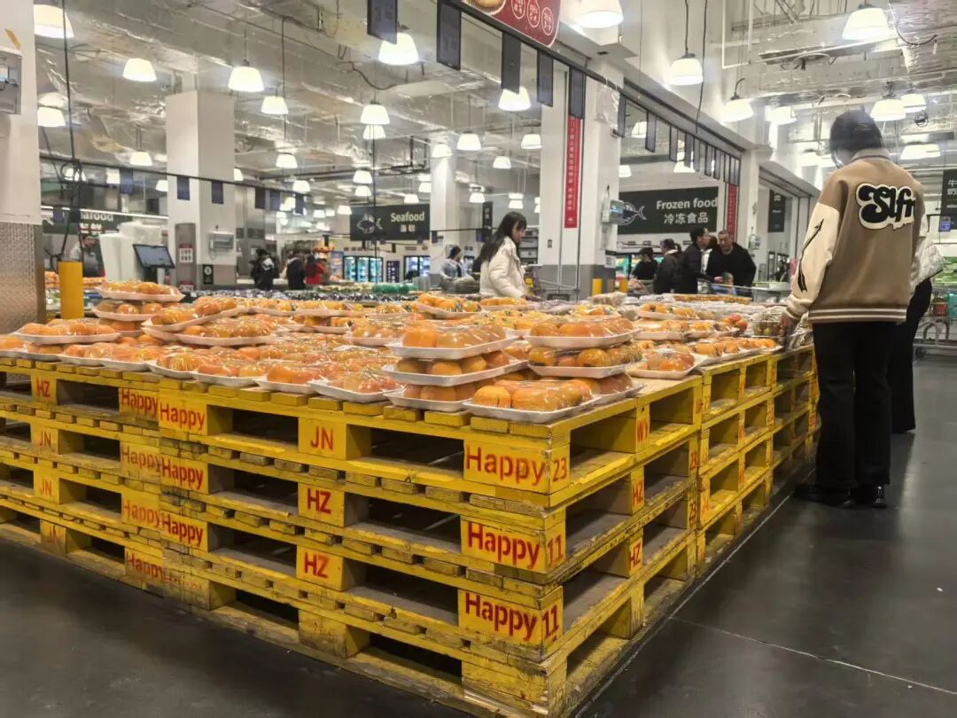 《零售圈》看到的第一個(gè)特點(diǎn)是,整個(gè)賣場(chǎng)的生鮮(水果、蔬菜、水產(chǎn)、海鮮等)都是托盤上打堆銷售,比較有親近感。一樓主要是水果和水產(chǎn),水果有現(xiàn)場(chǎng)切撥的榴蓮、椰子、甘蔗等,到處都是叫賣聲和試吃吆喝聲,十分接地氣。