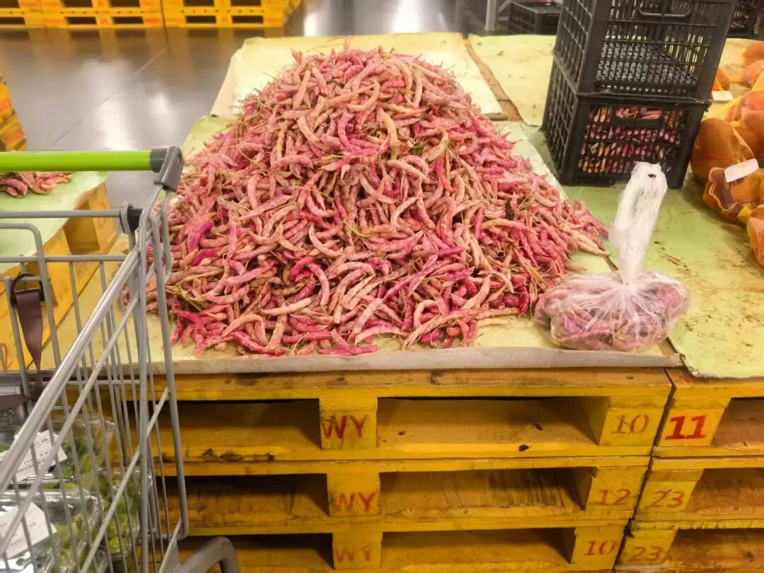 蔬菜在二樓,和一樓的水果陳列一樣,全部用托盤打堆銷售,很接“地氣”。