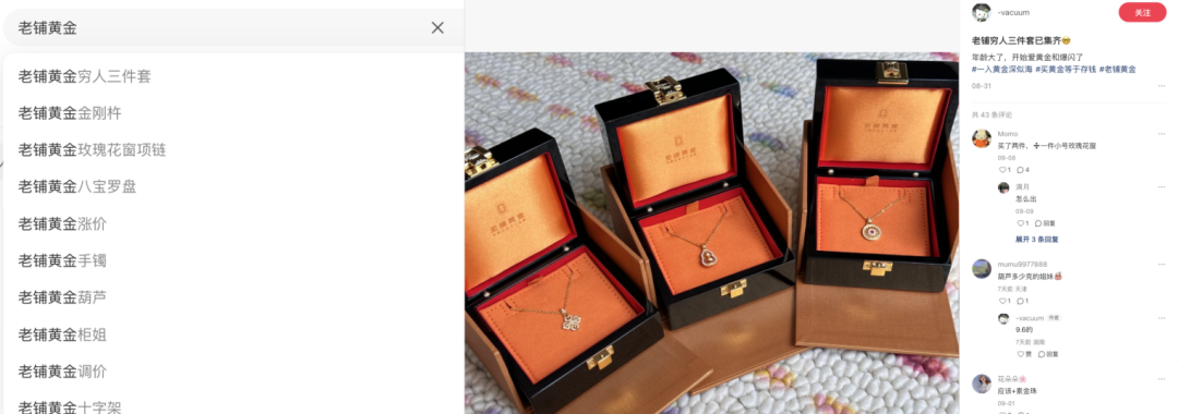小紅書(shū)“老鋪黃金窮人三件套” 來(lái)源:網(wǎng)絡(luò)