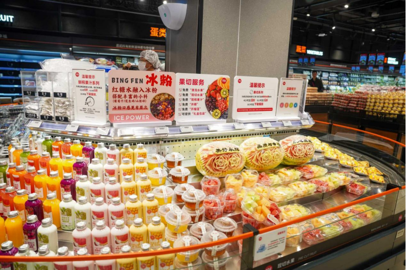 服務(wù)升級(jí)是此次調(diào)改的核心亮點(diǎn)。除保留砍肉、殺魚、活鮮打氧、水果清洗去皮切片等常規(guī)服務(wù)外,門店推出多項(xiàng)特色服務(wù):購(gòu)買天農(nóng)清遠(yuǎn)走地雞可免費(fèi)代烤;調(diào)理牛排、法式羊排提供免費(fèi)現(xiàn)煎服務(wù);水果果切按甜度編號(hào),并為顧客推薦品嘗順序。各檔口匹配專職行銷人員提供全日制服務(wù),并增加現(xiàn)制現(xiàn)售商品和時(shí)段專人試吃。