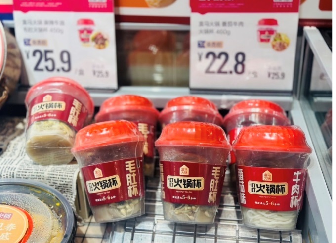 據(jù)了解,超盒算NB內(nèi)部遵循先“三高、三低”原則。高坪效、高人效、高品效,對應(yīng)著低售價、低損耗和低毛利。與注重逛店體驗感的盒馬鮮生店不同,超盒算NB門店裝修十分簡潔,為了減少人力,裝零食的紙箱、剩菜的周轉(zhuǎn)筐直接上架,采用真刀真槍地把成本壓到極致,把性價比做到極致,這也是新一代社區(qū)平價超市能把折扣做“硬”的奧秘。