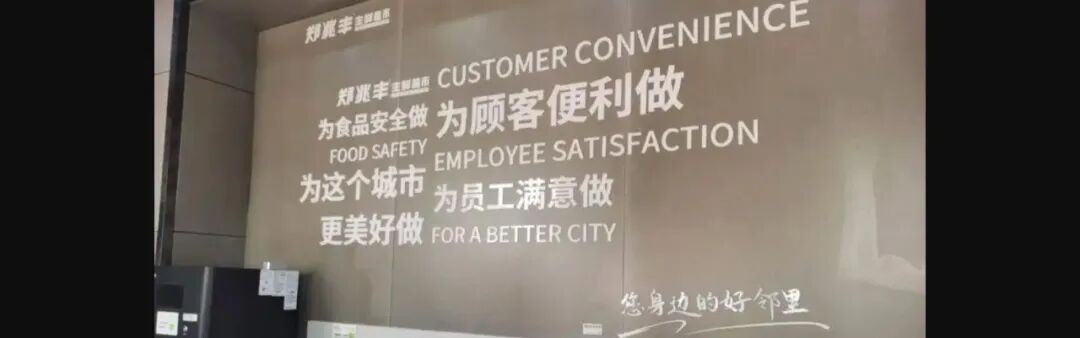 鄭春慶:我們墻上都貼著呢:“為食品安全、為顧客便利、為員工滿意、為城市美好”。