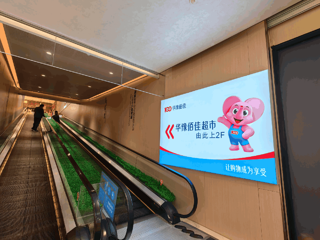 上電梯,墻面同樣張貼著華豫佰佳的價(jià)值主張,轉(zhuǎn)角就是華豫佰佳賣場。