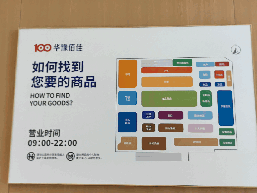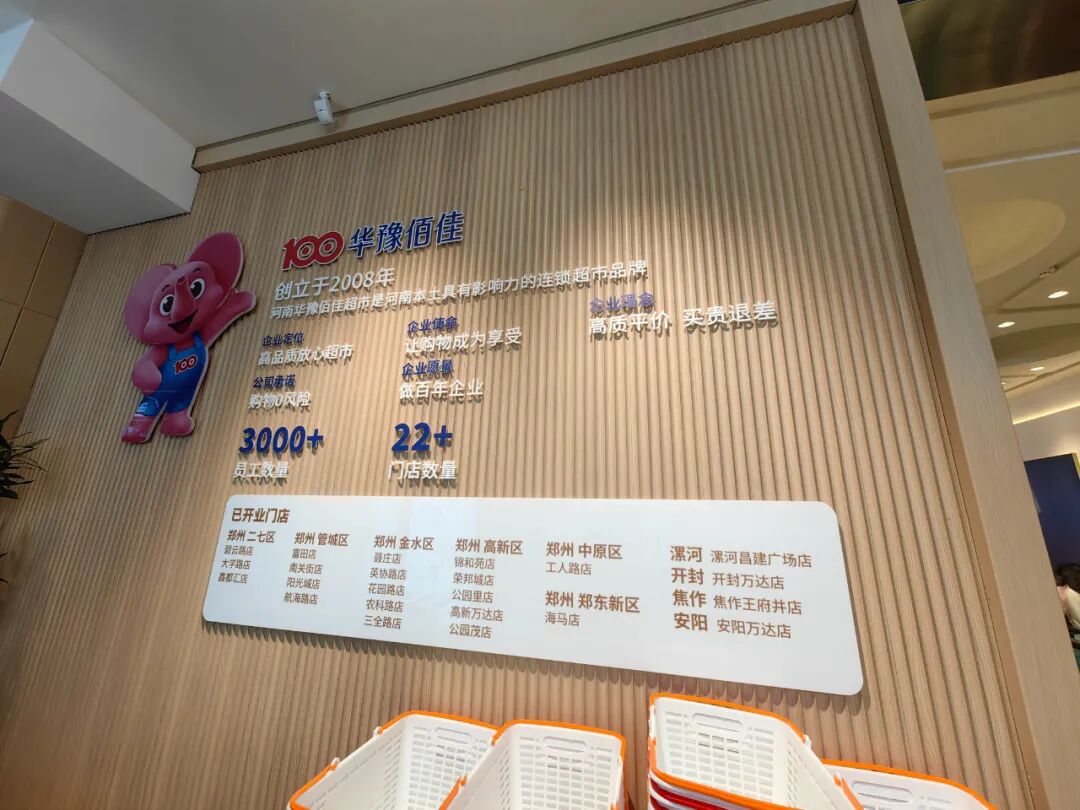 墻面上,除了門店導(dǎo)視圖,還清晰地展示了華豫佰佳的品牌理念,“讓購物成為享受”“用真誠和熱愛做事·傳遞美好生活”“公平·真誠·善良是我們的底線”“待顧客如家人 創(chuàng)造幸福鄰里”“為顧客著想·讓顧客少走彎路”“優(yōu)秀的商業(yè)從來不是規(guī)模的大小,而是不斷提高顧客的生活品質(zhì)和幸福感”,這些標(biāo)語,既有對(duì)大眾的期待,更是對(duì)員工的價(jià)值導(dǎo)向,讀起來讓人感覺非常溫暖。