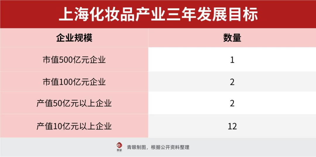 青眼注意到,此次宣貫會上,上海市經(jīng)濟和信息化委員會副主任葛東波還對外宣布上;瘖y品產(chǎn)業(yè)的發(fā)展目標(biāo):力爭用三年時間,培育出市值500億元企業(yè)1家,市值100億元企業(yè)2家;產(chǎn)值50億元以上企業(yè)2家;產(chǎn)值10億元以上企業(yè)12家。