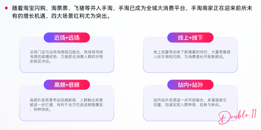 在流量方面,相較于競爭對手,現(xiàn)階段的淘寶閃購已經(jīng)形成全場景的流量體系,包括站內(nèi)與站外、線上與線下,高頻與低頻,近場與遠(yuǎn)場。