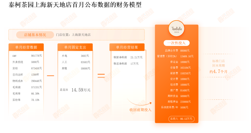 接下來,我們將以品牌自己公布的數(shù)據(jù)為基礎(chǔ),拆解泰柯單店的營收、成本、利潤。