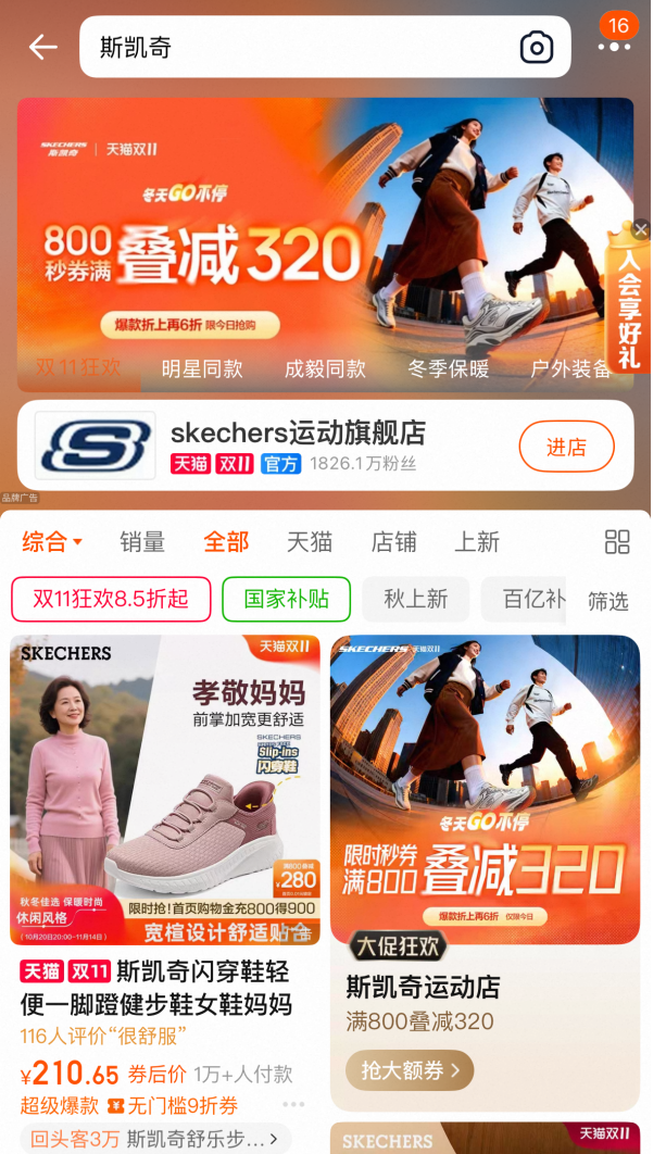 但這幾年,斯凱奇在年輕人面前悄悄失寵,在淘寶搜索“斯凱奇”,彈出的第一個(gè)廣告商品,明明白白告訴你,“孝敬媽媽,送斯凱奇”。