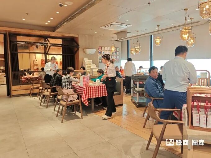 午間12:00-13:00的用餐高峰時段,在聯(lián)商網(wǎng)走訪的西貝北京大興龍湖天街店內(nèi),雖然是工作日,等位區(qū)已有顧客有序等候。店內(nèi)上座率穩(wěn)定在90%左右,其中以年輕客群為主,也有不少老年人。