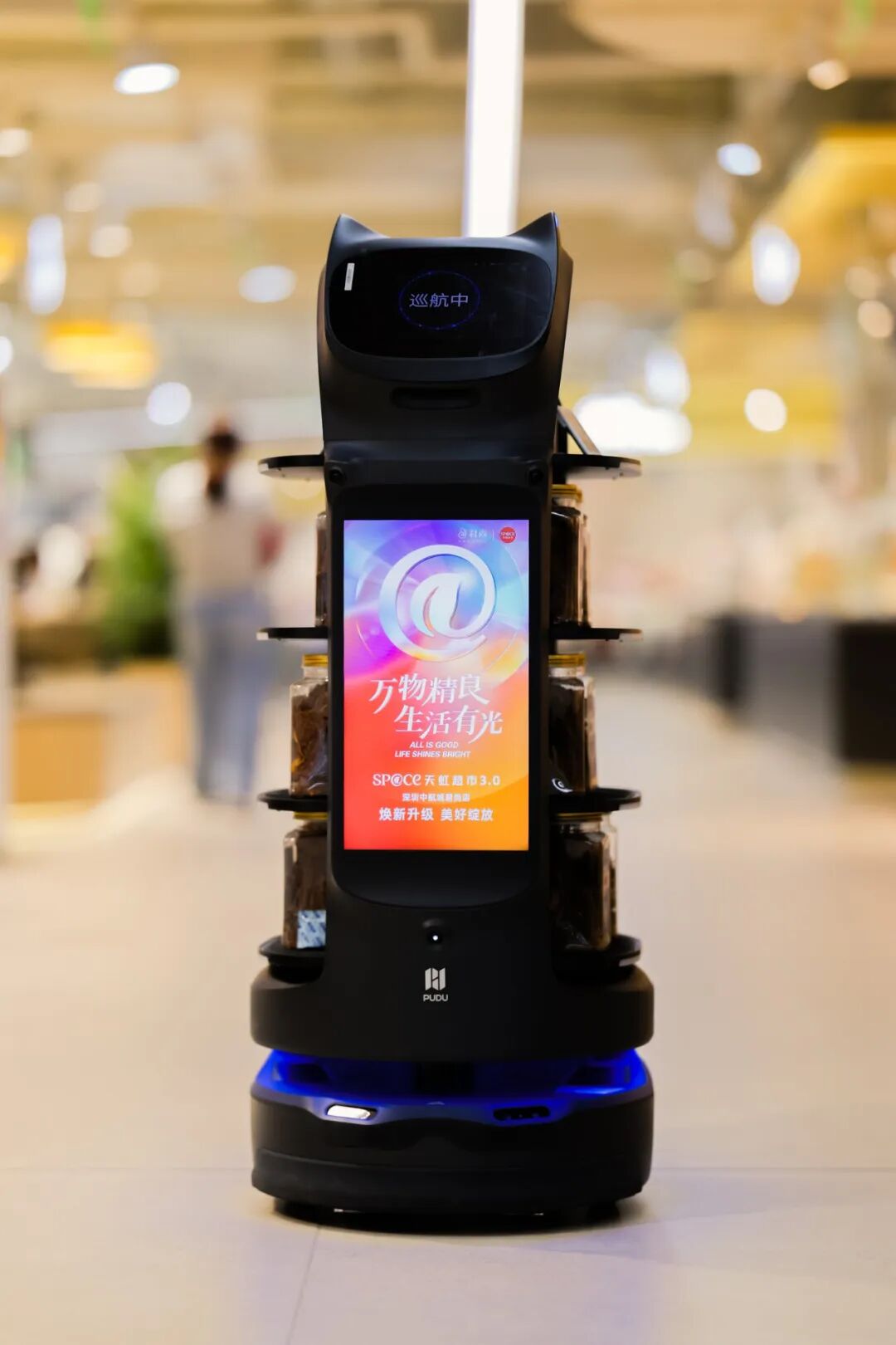 此外,還有智慧體驗(yàn),門(mén)店已部署智能導(dǎo)購(gòu)屏、導(dǎo)購(gòu)機(jī)器人等智能互動(dòng)設(shè)備,打造可視化、可交互的智慧購(gòu)物旅程,持續(xù)賦能實(shí)體商業(yè)的數(shù)字化升級(jí)。