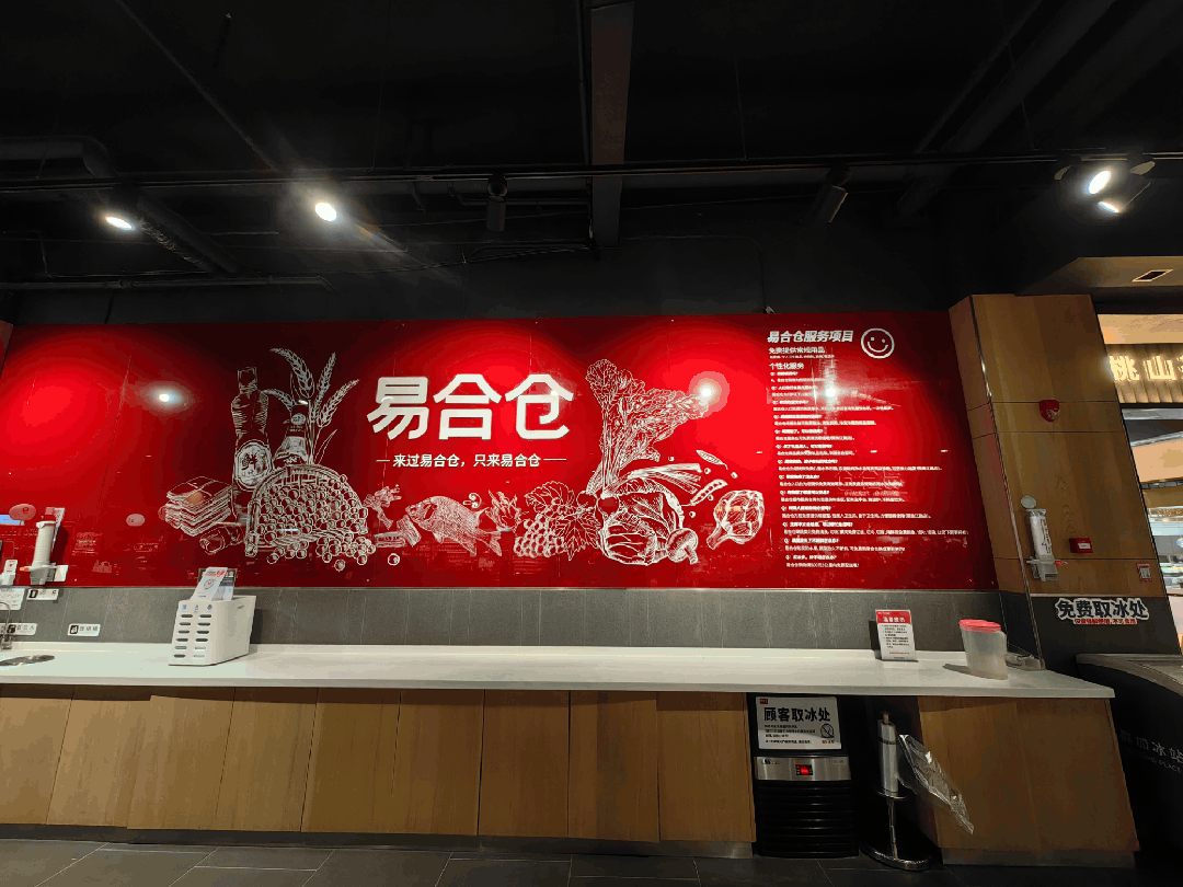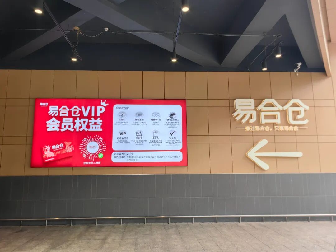 當(dāng)一般超市主通道掛滿價(jià)格標(biāo)語和旗幟時(shí),易合倉(cāng)選擇將服務(wù)作為主題表達(dá)。