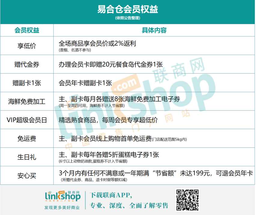 尤其是“省不夠就退”的承諾,即“3個(gè)月內(nèi)有任何不滿意或一年期滿‘節(jié)省額’未達(dá)199元,可退會(huì)員年卡”,降低了顧客辦理會(huì)員卡的門檻;同時(shí),在易合倉(cāng)的小程序上,顧客每一筆省錢都能看見。