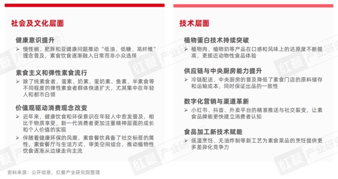 此外,在政策引導(dǎo)與經(jīng)濟迭代的雙重作用下,素食品類正迎來發(fā)展新契機。一方面,素食作為健康、低碳的飲食方式代表,近年來發(fā)展備受國家關(guān)注。國家以“健康飲食”戰(zhàn)略為統(tǒng)領(lǐng),從頂層設(shè)計推動素食產(chǎn)業(yè)向健康化、綠色化升級。另一方面,消費者健康飲食需求升級與農(nóng)業(yè)產(chǎn)業(yè)優(yōu)化形成的雙向合力,驅(qū)動著素食品類的發(fā)展。