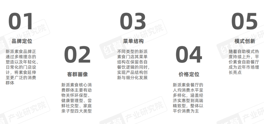 新派素食品牌在品牌定位、客群畫像、菜單結(jié)構(gòu)、價格定位、模式創(chuàng)新上均呈現(xiàn)出顯著特征。整體來看,新派素食品牌正在通過多維創(chuàng)新,逐步打破小眾圈層限制,向主流消費市場滲透。